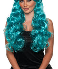Perruque bouclée longue bleu/vert